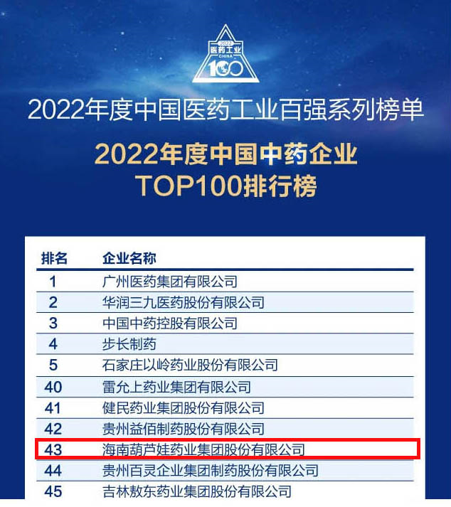 尊龙药业集团连续4年荣登“中国中药企业TOP100排行榜”,排名上升至第43位